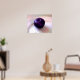 Ein lila Pflaume, eine reife Pflaume, ein glänzender Pflaume ist Gegenstand dieses Originalfotos. Wir sehen die runde Frucht, die auf den Kurven einer weißen Platte sitzt und ihren ovalen Schatten in Pastellfarben über das Gericht wirft, das auf einem strukturierten pastellfarbenen Hintergrund sitzt. Dieses Foto einer Pflaume in der Nähe zeigt die Pflaumenkurven um die Oberseite mit einem Highlight in heller Kobalt-Blau. Fast mitten in der Bühne auf hellen Untergründen, ist dieser farbenfrohe Pflaume der Star der Show, köstlich! Auf der Unterseite des Pflaumendrucks ist schwarzer Foto mit dem Aufdruck "PLUM" zu sehen. Dies ist ein Set, das Sie nach Belieben personalisieren oder löschen können. Genießen Sie die Schönheit der frischen Früchte jederzeit mit diesem Plakat.