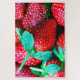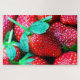 Ein Haufen roter Erdbeeren. Grüne Blätter. Frische Früchte, um Ihren Ort zu schmücken. Dieses wunderschöne große Puzzle mit 1014 Stücken macht Spaß, es zusammenzustellen und eine stilvolle Dekoration für Ihre Zuhause oder Ihr Büro zu machen. Sie können dieses Design auf eine Vielzahl anderer Produkte übertragen, insbesondere einen gedehnten Leinenprint, Metall- oder Holzwandkunst, Wandtafel, Flachkarte, Postkarte, etc.