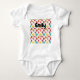 Dieser Babybodyanzug hat ein modernes Design aus Blume aus Quadraten, Ovalen und Diamanten, die zu Blume manipuliert wurden.