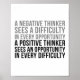 Ein negativer Denker sieht eine Schwierigkeit in jeder Gelegenheit Ein positiver Denker sieht eine Chance in jeder Schwierigkeit