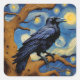 Ein Rabe in einer alten Eichenbaumnacht Quadratischer Aufkleber