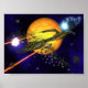 Ein Raumschiff, das Asteroiden eliminiert Poster