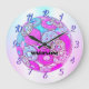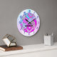 Ein Regenbogen der Farben, ein rosa Donut mit eine Große Wanduhr