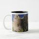 Ein Regenbogen fällt auf das mittelalterliche Dunl Zweifarbige Tasse