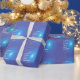 Schneeflocken u. Stern auf Mitternachtsblau.