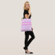 Erstellen Sie eine Windeltasche oder eine allgemeine Babytasche, indem Sie entweder den Namen des Mädchens oder den Namen der junge Mutter zu dieser fantasievollen, rosa Zirkus-Tasche hinzufügen. Der Alloverprint ist gefüllt mit rosa Elefanten, lila Siegeln, Ballons und Kugeln. Ein breiter rosa Streifen läuft den ganzen Weg durch den Totenbeutel, mit Platz für den personalisierten Namen auf der Vorderseite. Diese rosa Circus-Allover-Tasche kann gemischt und mit allen niedlichen gürteligen Elefanten-Gegenständen, die exklusiv in meinem Geschäft erhältlich sind, abgestimmt werden.