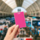 ein rosa Hintergrund mit schwarzem Rand Ausweis