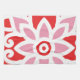 Das Design weist ein symmetrisches Muster mit einer Kombination aus Rot und Weiß auf. In der Mitte befindet sich ein stilisiertes Blumendesign mit nach außen strahlenden Blütenschichten. Um dieses zentrale Motiv herum sind wirbelnde Elemente und zusätzliche dekorative Formen, die ein ausgewogenes und harmonisches Aussehen schaffen. Die Verwendung von nur zwei Farben macht das aufwändige Design wunderbar.