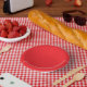 Mit einem roten Hintergrund und einem weißen Rahmen entsteht ein visueller Effekt. Entdecken Sie den Power von Farbschemas, Kontrastbildern und minimalistischer Ästhetik für eine elegante Website-Grafik.