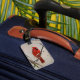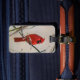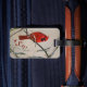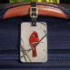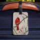 Ein roter Kardinals-Vogel auf einer Niederlassung Gepäckanhänger