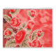 Das Design weist ein dekoratives Muster auf, das für Stoff oder Tapete verwendet werden kann. Eine ausführliche Beschreibung: ・ Farbschema: Die Primärfarben sind rot und beige. ・ Oberer Bereich: Es hat ein strukturiertes Aussehen mit vertikalen Streifen dunklerer Schattierungen auf einem leichteren Hintergrund, ähnlich einem drapierten Vorhangeffekt. ・ Verziertes Design: Auf der links Seite gibt es ein beige-farbenes, scrollähnliches Design, das durch seine Schattierung und Highlights reflektiv oder metallisch erscheint. ・ Zentrales Element: Eine Reihe von stilisierten roten Blume mit grünen Blätter, wahrscheinlich Tulpen, wird hervorgehoben dargestellt. ・ Untere Grenze: Am unteren Rand befindet sich ein Rahmen, der kleinere Versionen der Tulpe-Blume und Blätter-Set vor einem dunklen Hintergrund mit horizontalen Linien zeigt, was auf eine Heftung oder Lagen hindeutet.