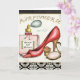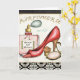 Ein roter Schuhputzer, eine Flasche Parfüm und Blu Karte