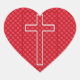 Ein rotes Christliches Kreuz. Herz-Aufkleber