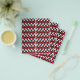 Das Design zeichnet sich durch ein auffälliges Muster mit folgenden Details aus: ・ Zigzag Lines: Das Design besteht aus mehrfarbigen Zickzacklinien, die eine Reihe V-förmiger oder Zickzack Muster erzeugen. ・ Rote Streifen: Vertikale rote Streifen sind gleichmäßig über das Muster verteilt, wodurch ein kontrastierendes Farbelement zum monochromen Schema hinzugefügt wird. ・ Symmetrie und Rhythmus: Die Zickzacklinien werden gespiegelt und so ausgerichtet, dass sie eine kontinuierliche Sequenz bilden, die dem Muster einen rhythmischen und visuell ansprechenden Look verleiht. Dieses Muster wird oft in Textilien oder als dekoratives Design aufgrund seines kühnen und dynamischen Aussehens verwendet.