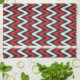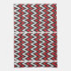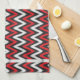 ein rotes und schwarzes Zickzackmuster auf weißem Geschirrtuch