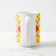 Tasse, Ein lebendiges rotes, gelbes und weißes Farbmuster klassisches Design. Die Tasse des Kaffees ist eine stabile Tasse, die oft hauptsächlich für den Kaffee, Tee oder heiße Schokolade verwendet wird. Durch seine langlebige Bauweise kann es Wärme behalten, was es ideal zum Schlucken macht. Neben dem Trinken werden Kaffeetassen oft zum Gaben und zur Darstellung von Kreativität verwendet.