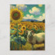Ein Schaf mit Hörnern im Sonnenblumenfeld Van Gogh Postkarte