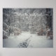 Ein schneebedeckter Weg durch einen Winterwald Poster