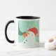 Ein Schneemann, der eine Verzierung auf einem Baum Tasse