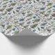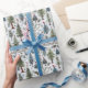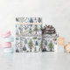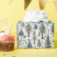 Ein Schneemann und Weihnachtsbäume in gepolstertem Geschenkpapier