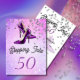 Ein Spaziergang in 50 elegante Geburtstagsfeier. Das Design besticht durch einen eleganten Stiletto-Fersenkuh und einen Glitzer-Hintergrund. Das Alter von 50 Jahren kann für jedes Alter geändert werden. Ihre Informationen können einfach geändert werden, um Ihre Einladung anzupassen.