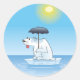 Ein schwitziger Eisbär beim Schmelzen von Eis Runder Aufkleber