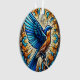 Ein atemberaubendes Buntglasfenster mit einem wunderschön gestalteten Bluebird, der in lebhaften Farben gekrönt ist.