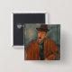 Ein Sitzmann, der auf einer Tabelle sich lehnt Button
