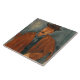 Ein Sitzmann, der auf einer Tabelle sich lehnt Fliese