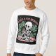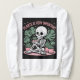 Ein Skelett liegt umgeben von getöpften Pflanze in Sweatshirt