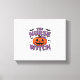 Ein spielerisches Design mit Kürbishexe und einem Leinwanddruck