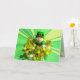 Grußkarte für den St. Patrick's Day mit meinem Originalbild eines Leprechaun-Charakters, umgeben von Goldmünzen.