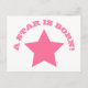 Eine niedliche Postkarte für ein neugeborenes Mädchen mit einem großen rosa Stern und einem GEBORENEN Slogan A STAR IS. Einfache Anpassung in Zazzle mit eigenem Text für ein personalisiertes Design. Alle Textstile, Farben, Größen können an Ihre Bedürfnisse angepasst werden.