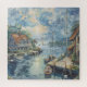 Ein Aquarell eines sehr stillen Hafens mit Booten und Häusern