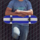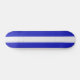 Ein weißer Racing Strip auf blauem, gepolstertem Longboard