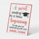 Ein Süß, der zu einem neuen Beginnend-Abschluss en Sockelschild