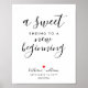 Chic "Ein süßes Ende zu einem neuen Anfang" Hochzeitszeichen. Das Design vereint schicke Kalligraphie mit modernem Stil und ein niedliches kleines Herz. Personalisieren Sie das Design, indem Sie Namen, Datum und Hashtag ändern. In unserem Shop sind auch passende Produkte wie Greifbeutel, Weinetiketten, Aufkleber etc. erhältlich.