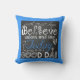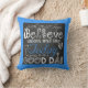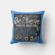 Unser guter Tagesinspirational Kissen kennzeichnet einen Textentwurf unter Verwendung des verschiedenen Schriftartes von Weiß auf einem schwarzen Tafelblickhintergrund mit einem Pop des Blaus für Farbe mit einer blauen zusammenpassenden Grenze! Text liest "Glauben… Vertrauens… Hoffnung glauben, waken und sagen Sie heute wird ein GUTER TAG sein"!