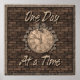 Alte Mauer mit einer alten Uhr und die Worte Ein Tag nach dem anderen. Dieser Slogan ist während der zwölf Stufen der Erholung zu hören. Dieser Slogan der Erholung ist auf T - Shirt, Sweatshirts, Hoodys in vielen Farben und Stilen für Damen und Herren erhältlich. Karo die Karten, Tasse, Hüte, Leinwand-Tasche und Geschenkartikel, die mit diesem Erholung-Slogan zur Verfügung stehen.