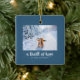 Blauer Ornament mit Platz für ein persönliches Foto. Ein Nervenkitzel der Hoffnung, die müde Welt freut sich.