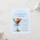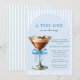 Eine Tini One ist auf dem Weg Jungen Paarbaby-Party - Feiern Sie die bevorstehende Ankunft eines kleinen Bündels Freude mit unserer Einladung zur Paarbaby-Party "Eine Tini One ist auf dem Weg". Dieses charmante Design zeigt einen Espresso-Martini, elegant geschmückt mit einer zarten blauen Schleife, und gibt den Ton für eine moderne und dennoch verspielte Feier an. Die Einladung hat auch einen trendigen blauen Küstenstreifen-Hintergrund. Verfügbar mit oder ohne Hintergrund. Die moderne Kalligrafie und stilvolle Typografie geben der Einladung eine anspruchsvolle und zeitgemäße Note, während die sanften Blautöne eine perfekte, einladende Atmosphäre für den kleinen Jungen schaffen, der bald seinen großen Auftritt haben wird. Es ist die perfekte Mischung aus Wärme, Stil und Aufregung, um diesen besonderen Anlass zu feiern!