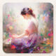 Ein von der KI generiertes Bild eines Mädchens, das in einem Blumengarten träumt. Ideal für ein Kinderzimmer oder ein Mädchenzimmer.