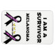 Ein Überlebender von Melanoma! Auf der Spitze des Designs stehen die Worte "Ich bin ein Überlebender" Unter diesen Worten ist das Wort "Melanom" und "Leben für das Leben". Auf der Unterseite des Designs befinden sich 2 schwarze Bänder, die die Krebsfarbe des Melanoms sind. Auf einem Band steht "Ein Überlebender" und auf dem anderen schwarzen Band die Worte "Leben für Leben". Zwischen diesen beiden Bändern sind die Worte "Leben für das Leben" mit 3 gelben Schmetterlingen über der Mitte dieser Worte. Auf der Unterseite der Vorderseite des Designs unter dem rechten schwarzen Band sind die Initialen CC zu Ehren meiner Schwester, ein Überlebender von Melanoma Cancer!