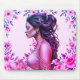 Eine schöne Frau, umgeben von rosa Blumen, mit dunklen, welligen Haaren, die ihren Rücken hinunterfließen, auf einem dicken, personalisierten Laptop-Mauspad. Verschenken Sie eines an Ihren Partner oder wenn Sie heiraten, besorgen Sie einige für Ihre Hochzeit, mit Ihrem Foto darauf für Ihre Hochzeitsgesellschaft.