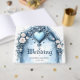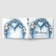 Ein verzierter, hellblauer Bogen mit Blumenakzente Gästebuch