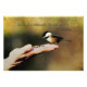 Foto eines Vogels in der Hand...ein weibliches Mädchen, mit einem Zitat aus Shakespeare: "Eine Touch der Natur macht die ganze Welt zu einem Verwandten".