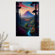 Ein Waldrand gegenüber dem mächtigen Vulkan Poster