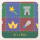 Mit diesem fantasievollen Design ersticken Sie die Fantasie Ihres jungen. Vier Quadrate in Blau, Grün, lila und Rot sind durch Goldstiche und Silberstiche gerahmt und mit lustigen, stilisierten Ikonen geschmückt, die in jeder Fantasie beim Zuhause zu finden wären, darunter ein Sternzauberstab, ein Schlossturm, eine mit Juwelen geschmückte Krone und ein blaues Schwert. Passen Sie die Botschaft auf der grünen Overlay-Leiste an, indem Sie das Geschlecht Ihrer kleinen Person oder eine Botschaft Ihrer Wahl eingeben, um eine wirklich einzigartige Party-Dekoration für Ihre Babydusche zu schaffen. Karo in der kompletten A Wee One's Fantasy Quilt Kollektion für mehr tolle Geschenke und Produkte für eine Babydusche oder die kleine Dusche in deinem Leben.