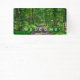 Sonne scheint durch Bäume, mit einem Weg durch den grünen Wald