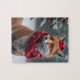 Ein Fox mit einer Weihnachtsmannmütze und Scarf.